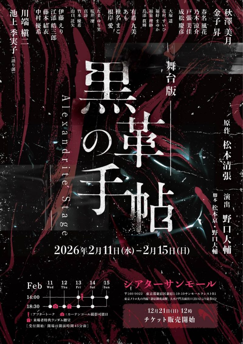 Alexandrite Stageが贈る舞台版『黒革の手帖』が上演されます。